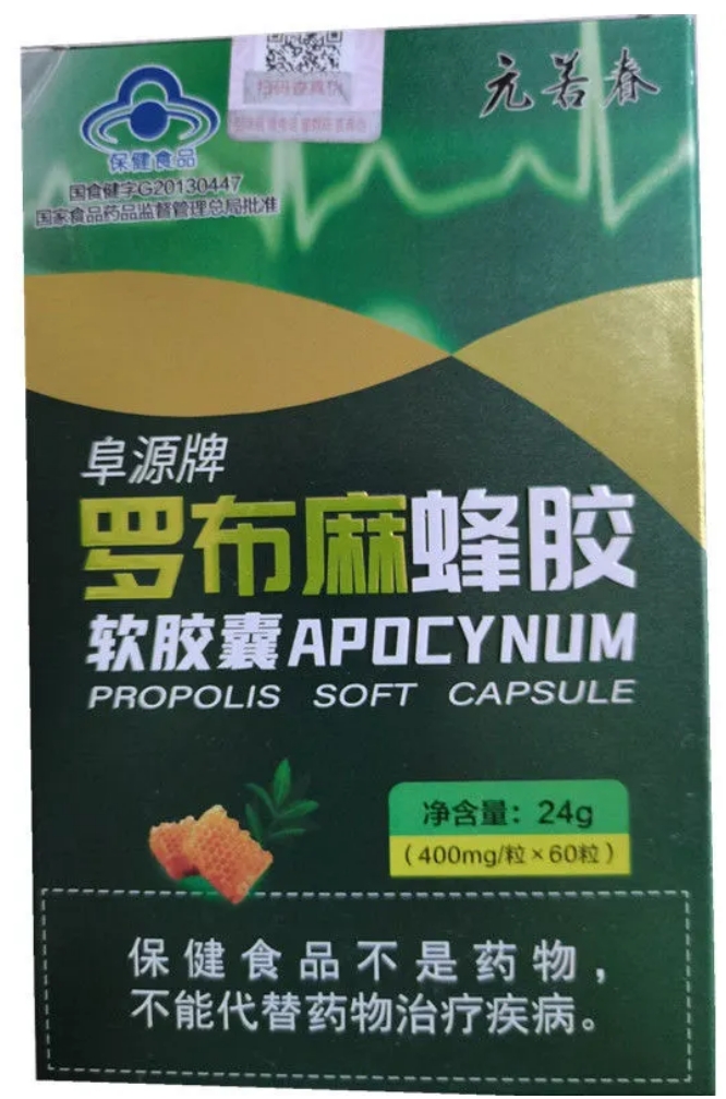 【主要原料】羅布麻提取物、蜂膠、葡萄籽油、蜂蠟、明膠、純化水、甘油、棕氧化鐵、誘惑紅